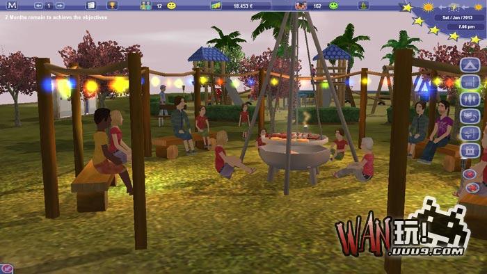 让客人开心满意就是你唯一的责任!你必须在一个合理的地方位客人设置厕所,并提供乐趣和游乐设施,这些东西包含了划船、深夜露营、营火晚会、烧烤等等。 你可以完全自由设置自己的玩乐天堂!可以在你的营地中设置各种植物、花盆、树木或是各式各样的艺术品,适当的旋转放置物品可以提升效率,也有绘图工具可以使用。