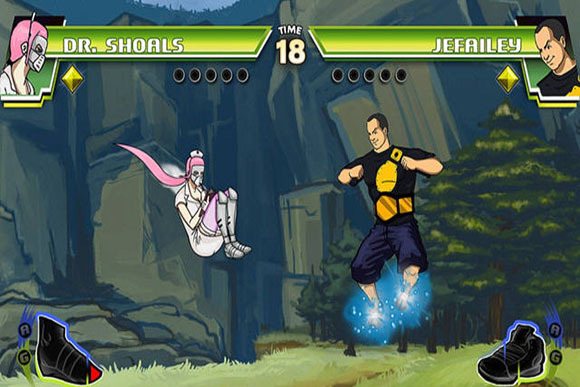 很多人羡慕格斗游戏高手,看着那些家伙操作角色在屏幕上施展帅气的连技总觉得很向往,但是手残的玩家就会纳闷为什么同样的按键自己却搓不出来连技。其实错的不是自己而是世界,给你一个只有两个按键的格斗游戏的话,你也一样可以成为高手。 日前Iron Galaxy工作室公布了一款格斗游戏《Divekick》,它真的只需要两个按键哟!两个按键分别对应踢和跳,你只需要踢到对手一下它就会被秒杀,同理你也要在进攻同时防止敌人踢到你,是不是看上去简单又有趣呢。游戏发售日为2013年8月20日,售价为9.99美元,感兴趣的玩家可以留意一下。