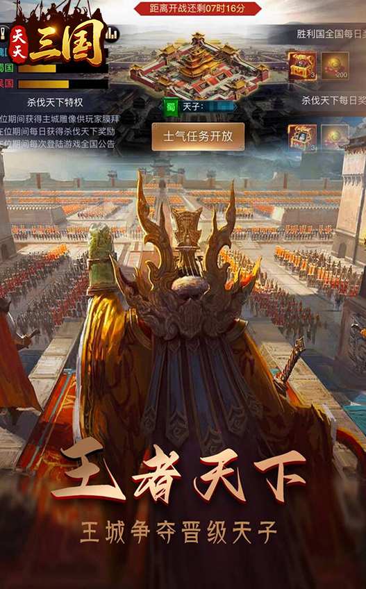 《天天三国》是一款精心制作的万人即时战斗SLG三国手游。以真实的三国城池攻防战的全新视角,带你重回三国,和千万玩家一起,在三国真实地图上,攻城掠地,一统天下!