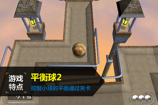 挑战重力的极限!面对令人头晕目眩的高度和望而生畏的深度,控制一个球在一个充满铁轨、木桥等机关的超真实世界中遨游。这里有超过12个不断提高难度的关卡,每一关都有更加复杂的迷宫和机关等待你去克服!12关过后有一个隐藏关卡13关,由于有中国人参与游戏制作,所以取名“速度”。