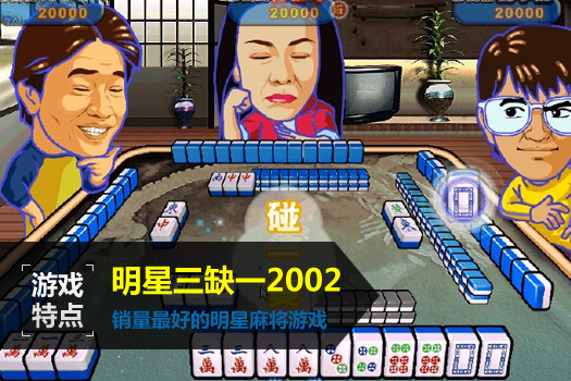 《明星三缺一2002》沿袭着《明星三缺一》的招牌桌面视角,颠覆了以往2D传统的手法,仿真以真实打麻将的角度,营造出「玩家是真的坐在牌桌上和其它三家打牌」的紧张、刺激感。而在牌桌及背景方面,这次更融合了音乐也会有不同的变化,随着播放不同国度的音乐、场景、牌桌也都会变出当地的特色感觉,这是之前所没有的感受。
