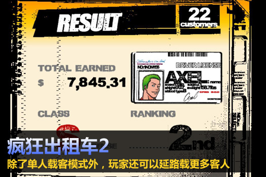 这次「疯狂出租车2」游戏舞台由美国西岸的旧金山移师到东岸的纽约市,地图更广大、游戏也更疯狂,除了单人载客模式外,还能延路载更多客人,更疯狂的飚车。这款游戏现在看来更像是疯狂出租车3的精简版,呵呵,因为配置而不能玩疯狂出租车3的朋友可以试试疯狂出租车2体验一下疯狂出租车系列的crazy