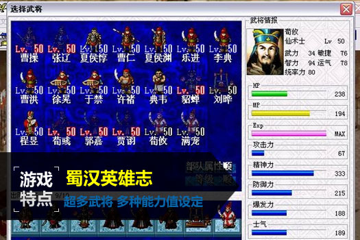 说是很老的一款游戏了,但相较于现在很多的ASLG来说,《蜀汉英雄志》显得毫不逊色。游戏以西元2到3世纪、魏、吴、蜀三足鼎立的时代为背景,由玩家扮演魏主曹操,进行统一天下的大业。游戏基本以罗贯中的《三国演义》为蓝本,在战斗的间歇加入了很多故事情节,使得原本的一场场单独的战斗有了线索上的联系。