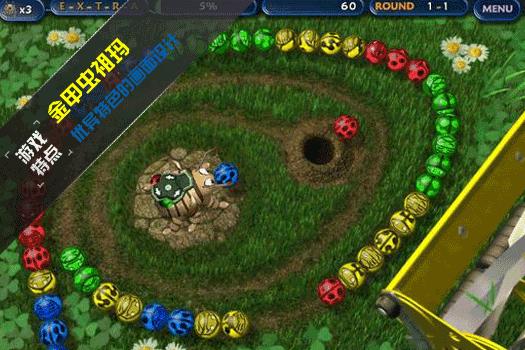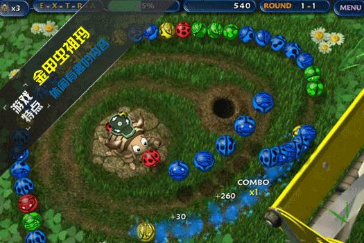 《Tumblebugs》一款祖玛类的消除游戏,主角换成了可以吐出各种颜色的美丽珠子的金甲虫,环绕着金甲虫的是珠子运行的轨道,各种颜色的珠子会沿着轨道往前滑动,金甲虫必需阻止珠子滚进去轨道终点的洞里头,游戏的背景精致细腻,音乐非常出色。游戏中需要靠金甲虫吐出的珠子与轨道上的珠子结合,三个以上颜色相同即可以消失得分!