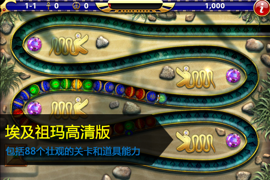 神秘的女神伊希斯招唤你来进行战斗,通过一系列个令人目眩神迷的关卡,挑战恶魔邪恶的力量。你可以使用神奇的圣甲虫进行射击而破坏相同颜色的三个连续的魔法球。在它们在连续不断的前进到达金字塔之前组织它们。埃及王国的命运掌握在你的手中!