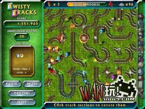 一场暴风雪将你埋藏在地下的宝石吹散到了世界各地,你必须依靠自己的努力将它们重新收集起来。该游戏将动作游戏与智力游戏结合在一起,游戏方式很简单,你控制的是一个小火车头,你必须通过扭动铁轨,收集完过关所必须的宝石,送入车站后即可过关,当然,随着游戏的进程,所需要宝石会越来越多,还有捣乱的小飞机,会破坏你摆好的轨道。如果你一次性收集完一关里的所有宝石,还可以获得奖励关的。