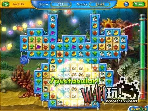 带有渲染效果的精美游戏画面质感很强,丰富的游戏背景仿佛展现了真实的水下世界。不仅有形形色色的海洋生物,配合全新的游戏主题,从消除标志到场景装饰全部焕然一新,表现的十分到位。