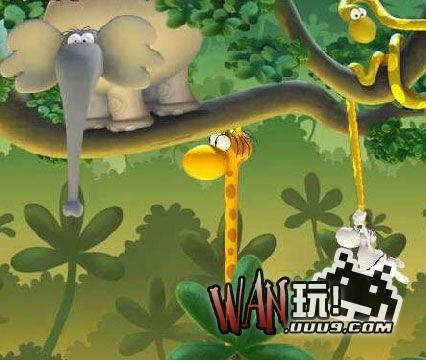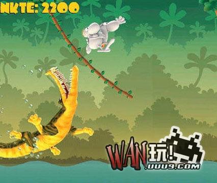 我们的主角要从雨林的一端,悠荡树藤到对岸,营救自己的心爱之人,还要抱着她荡回去,中途会用长颈鹿伸出脖子来“问候”你,鳄鱼在下面“期待”你,一不留神大象的鼻子也被你当做树藤了,还要小心毒蛇的袭击哦。