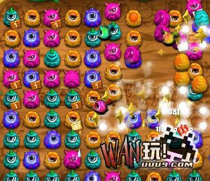 在遥远的森林小镇中,独眼小怪物家族居住在这里。一群淘气的小怪物在游玩的途中迷了路,需要你帮忙,在天黑之前把它们送回家。经典的消除类型,至少要带领2个相同颜色颜色的小怪物组成一队才可以进行消除。