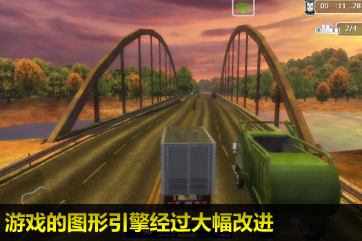 本作中有10个城市,3种难度,5类不同的卡车近60个任务供玩家选择。游戏的图形引擎也经过了大幅改进(支持NVIDIA PhysX)。游戏中支持车体损坏效果,昼夜回圈效果,光纤反射和微粒效果等。