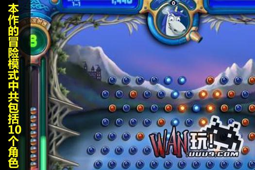 这是一款类似弹珠台的射击消除游戏,你需要射击一个银色球,将画面中的橙色球全部击中消除便可过关,除此之外,还有紫色的高分球、绿色的能力球。冒险模式一共有10个角色,都有不同的能力,比如南瓜人的两次掉落、小丑的随机能力。