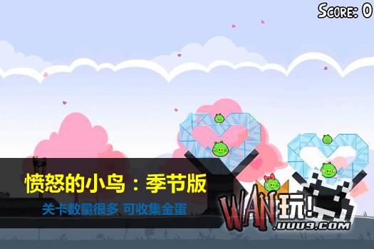 《愤怒的小鸟》已经出了6款季节版和一款电影版:夏日猪餐(Summer Pignic),万圣节版,圣诞版,情人节版,圣帕特里克节版(美国的爱国将士纪念日,该版本又称三叶草版),复活节版,里约大冒险版(又称Rio版),每个版本都针对季节和电影情节重新设置新的关卡和新的场景。